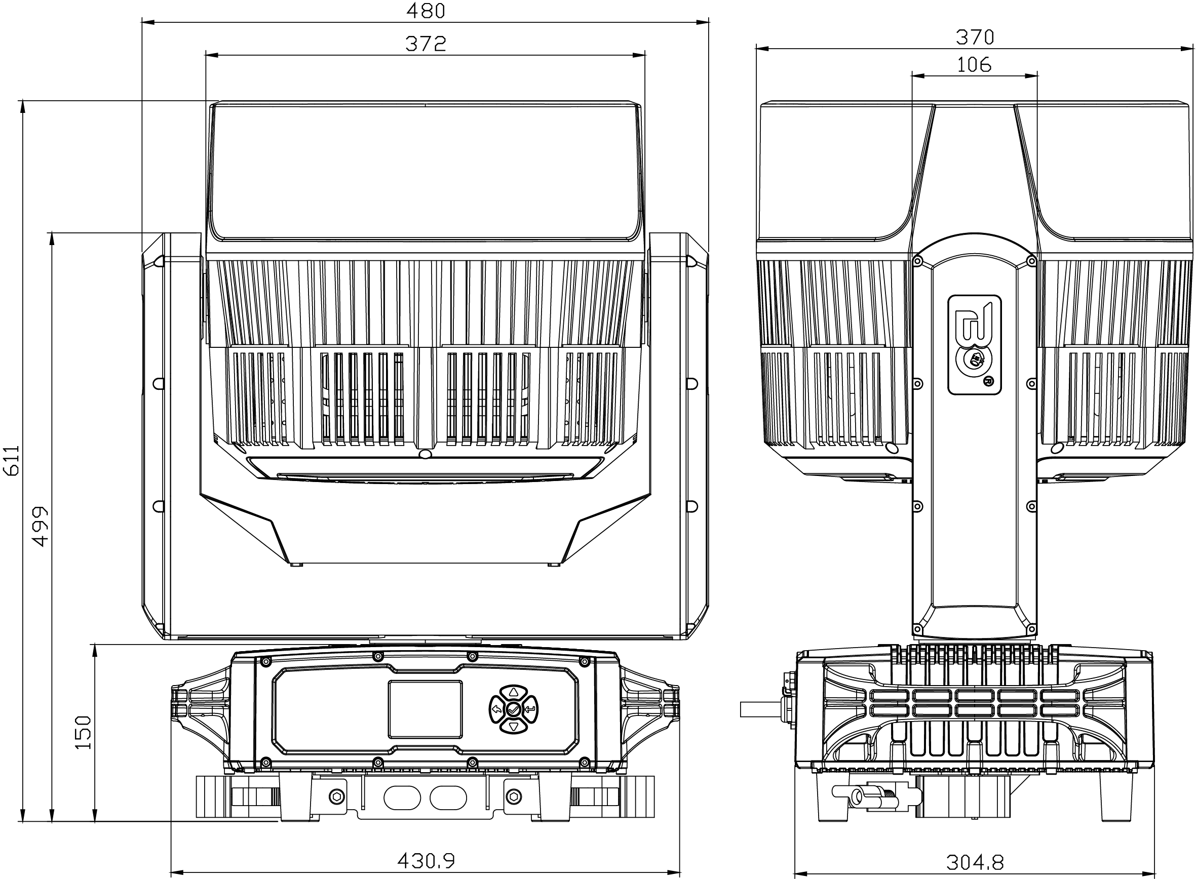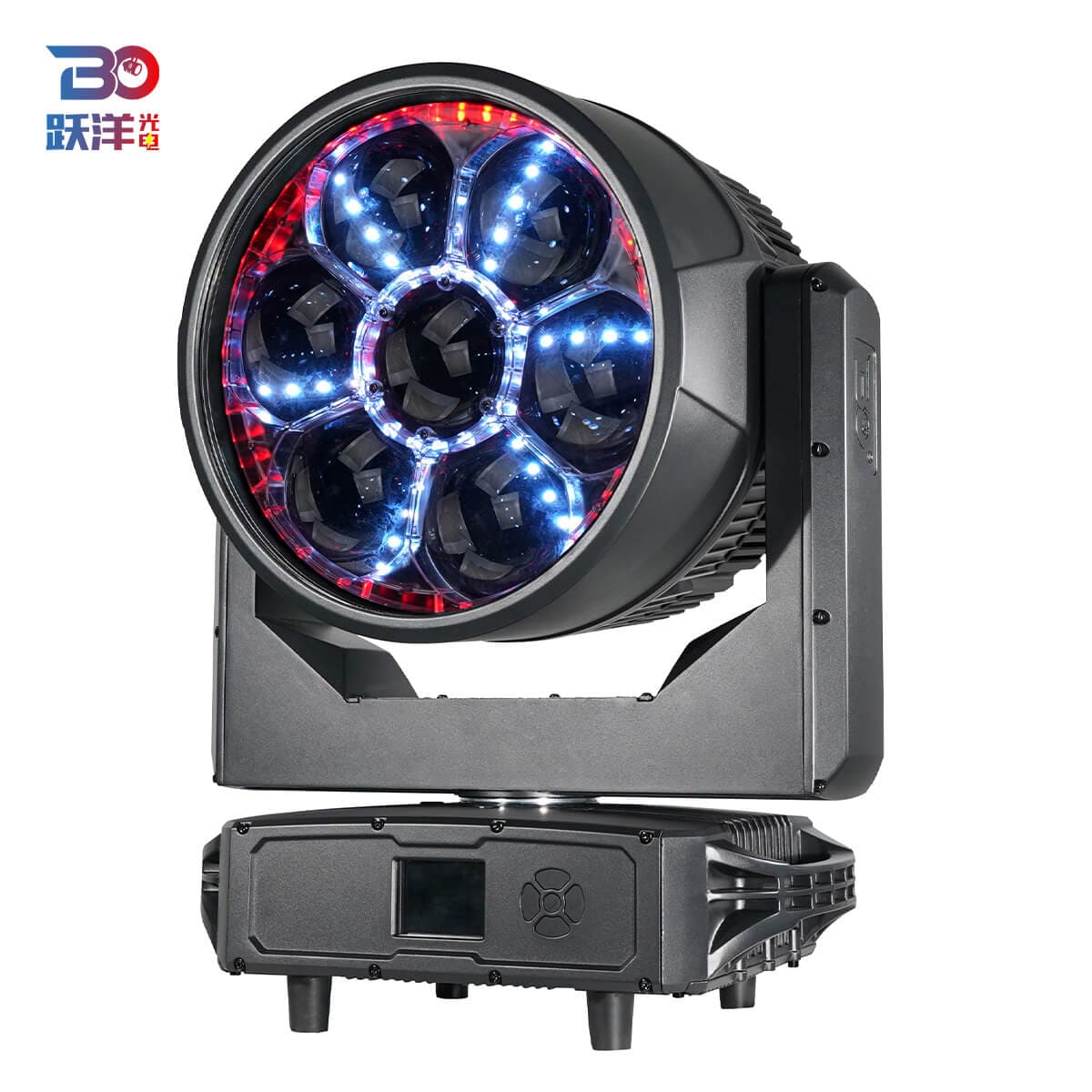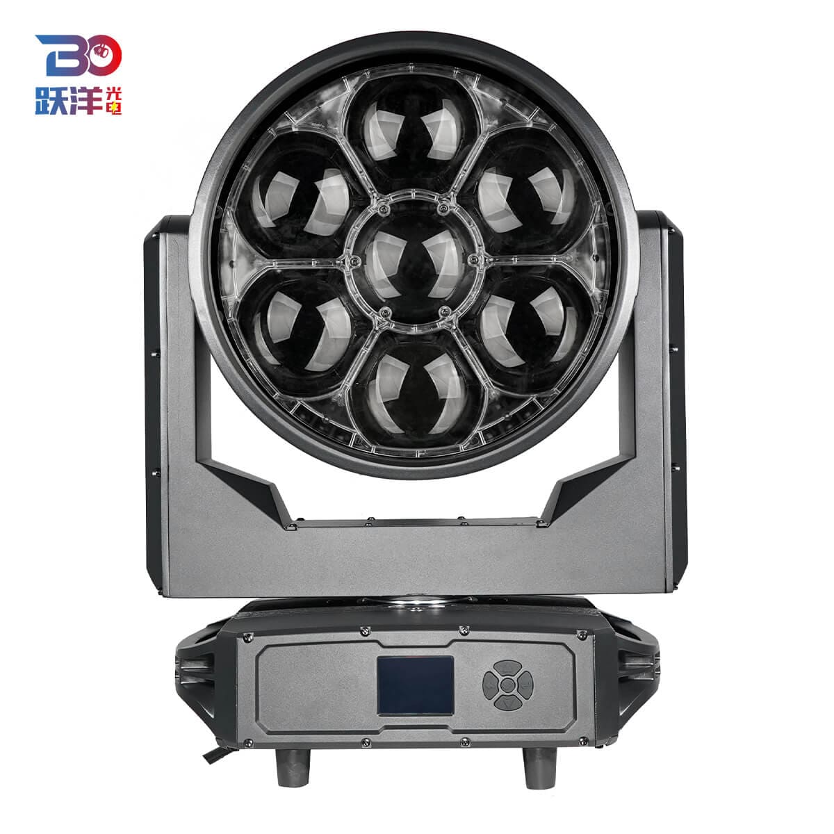 效果配置:7颗200W灯珠单点控制;200W灯珠;板上方采用102颗彩光LED作辐光,可单独控制;0%-100%顺滑调光,多种速度频闪效果;4种调光曲线可选;CTO色温调节2800K--8000K;卓越的色彩宏效果;电动缩放系统;集强大的光束、染色、蜂窝效果、辐光点缀等效果功能于一体;温度传感检测,智能调整光源功率,智能风机调速