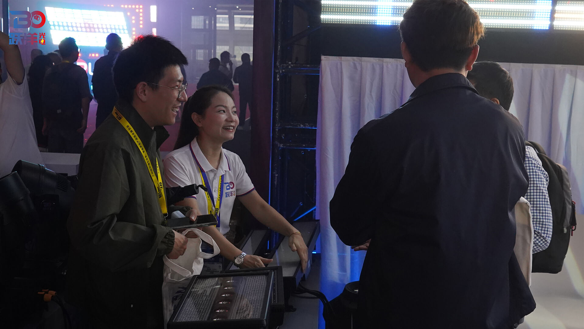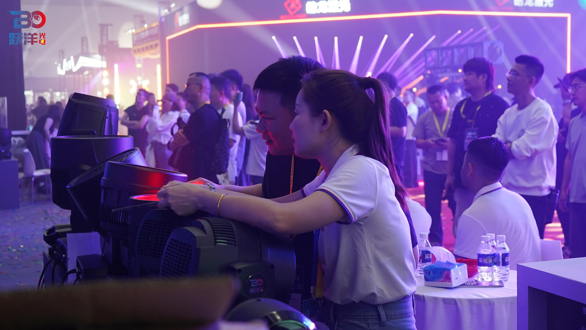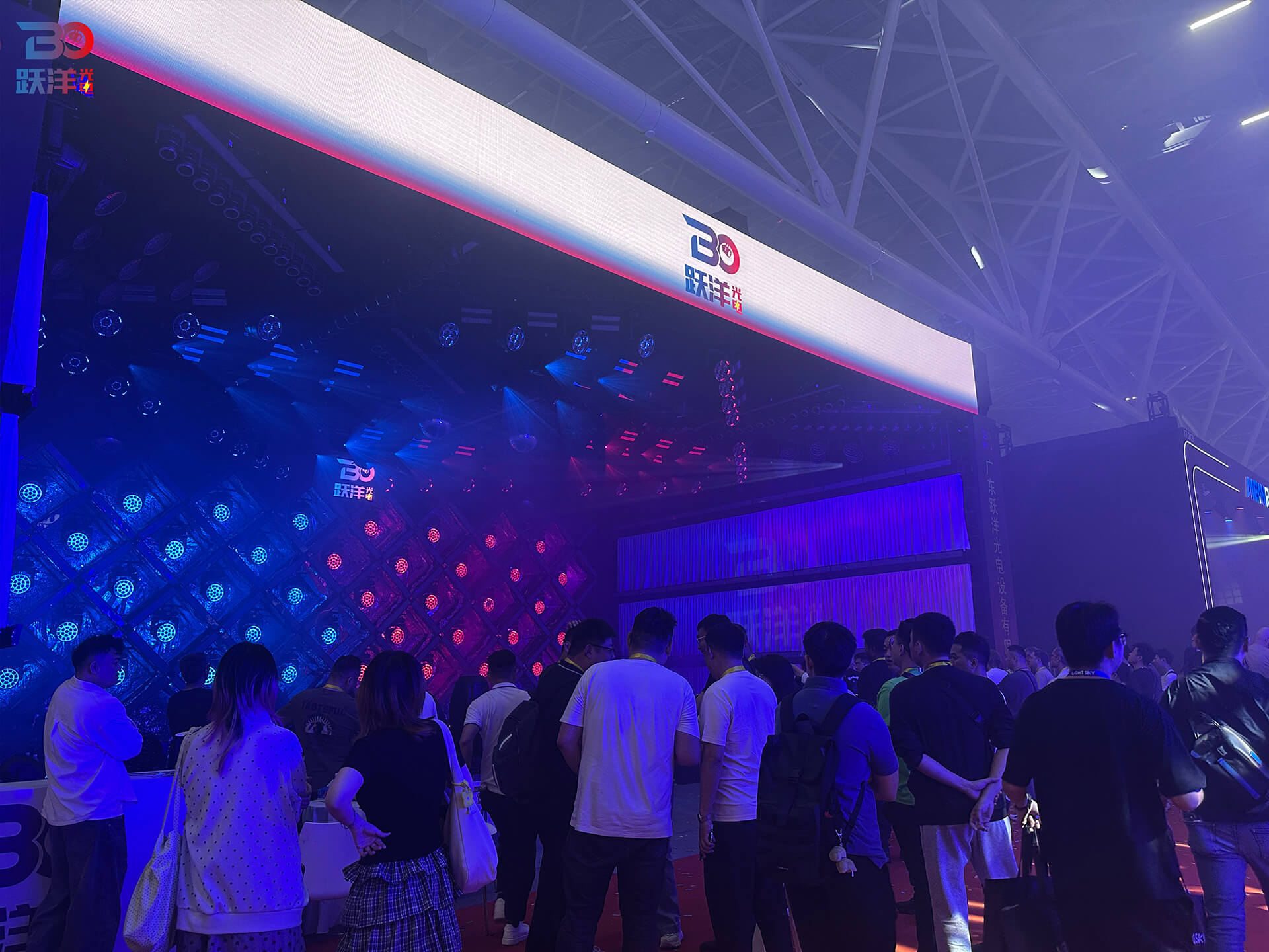 此次盛会,在广交会展馆 D 区 17.2C4 的中心坐标,跃洋光电 以全阵容光影矩阵构筑起一方流光溢彩的场域。这不仅是产品的重磅亮相,更是一场关于声光电联动美学的深刻诠释。