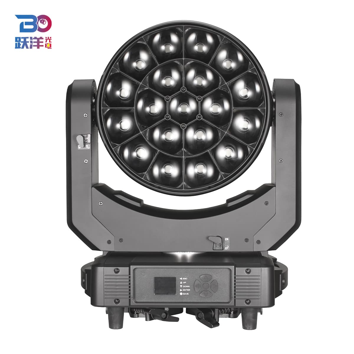 效果配置:全光域调光,256级调光精度;快速频闪1~25Hz;19颗60W灯珠预置多种颜色宏功能;预置多种效果(染色、圈控、频闪)宏功能