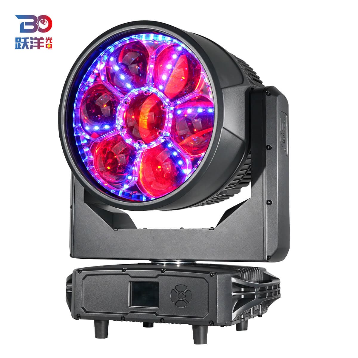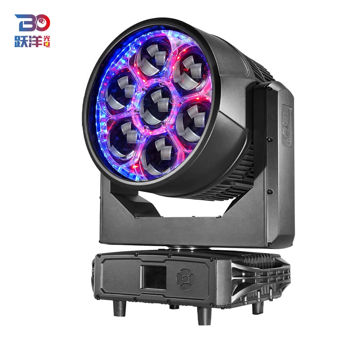 效果配置:7颗200W灯珠单点控制;200W灯珠;板上方采用102颗彩光LED作辐光,可单独控制;0%-100%顺滑调光,多种速度频闪效果;4种调光曲线可选;CTO色温调节2800K--8000K;卓越的色彩宏效果;电动缩放系统;集强大的光束、染色、蜂窝效果、辐光点缀等效果功能于一体;温度传感检测,智能调整光源功率,智能风机调速