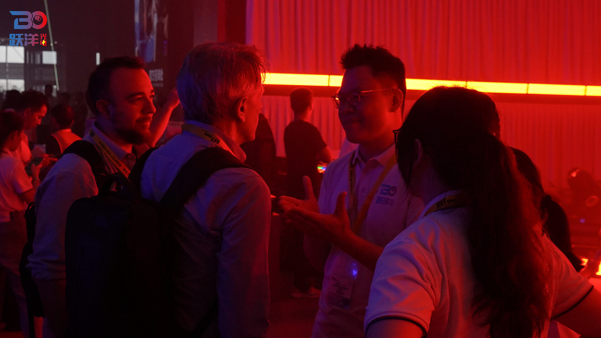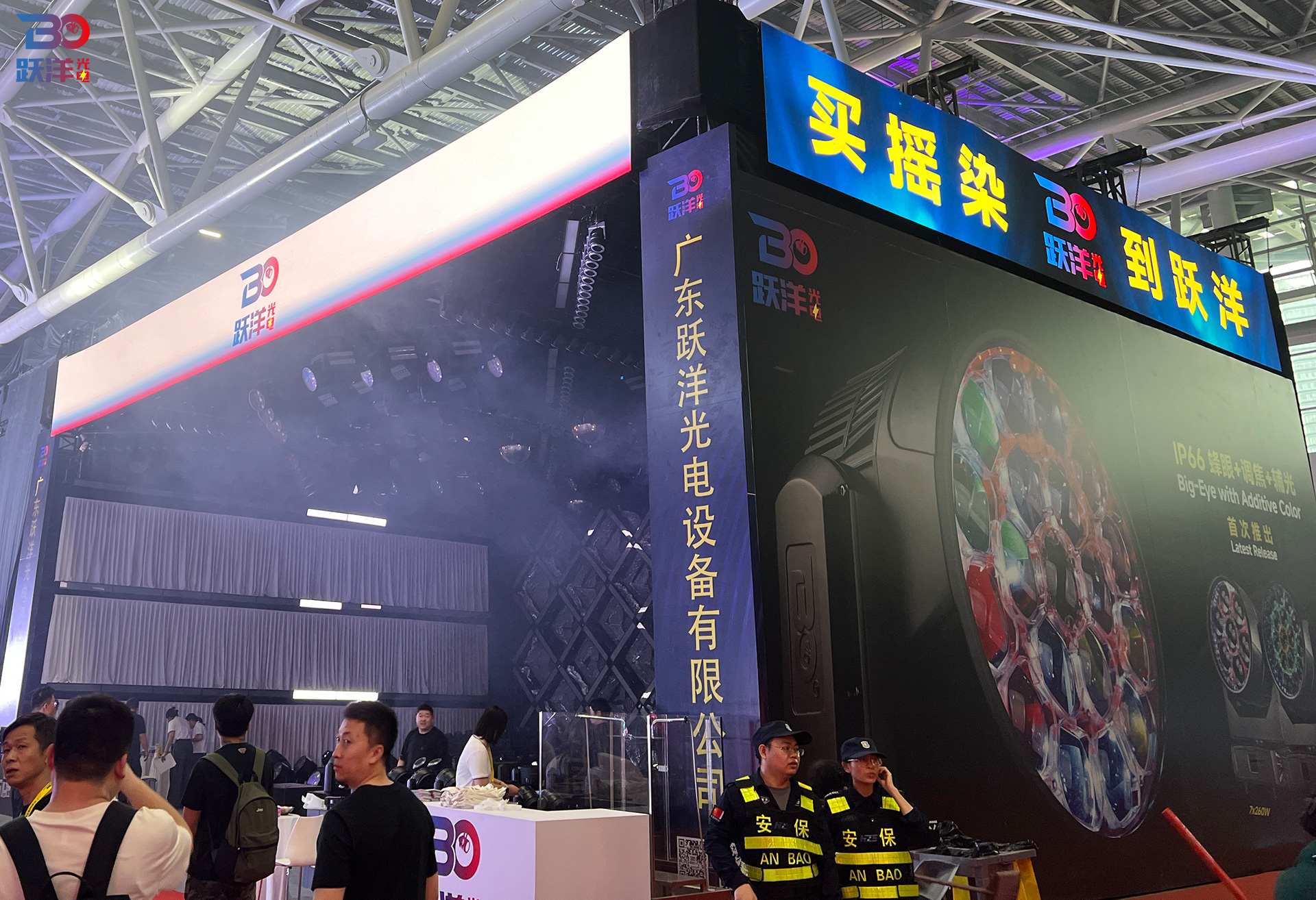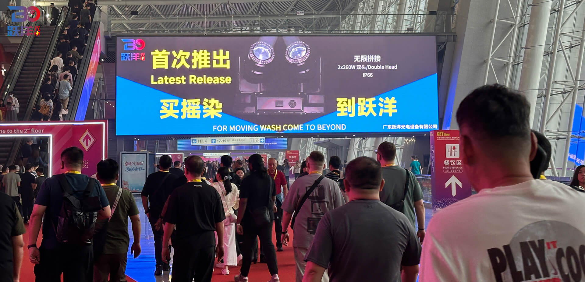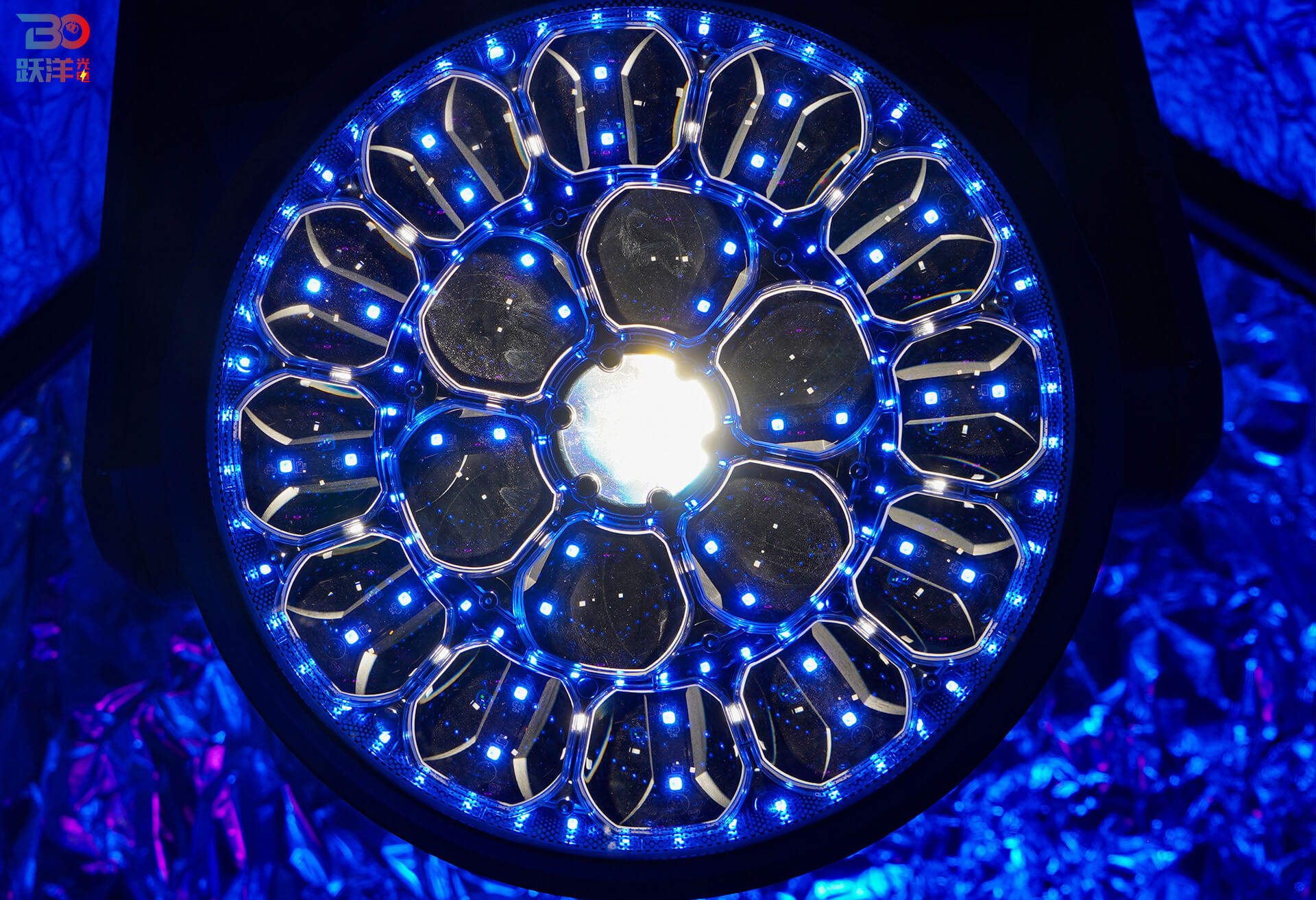 此次盛会,在广交会展馆 D 区 17.2C4 的中心坐标,跃洋光电 以全阵容光影矩阵构筑起一方流光溢彩的场域。这不仅是产品的重磅亮相,更是一场关于声光电联动美学的深刻诠释。